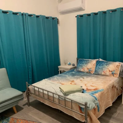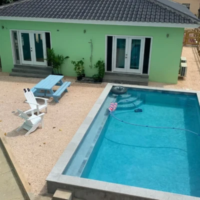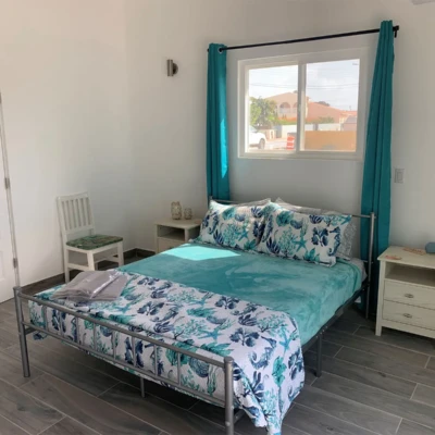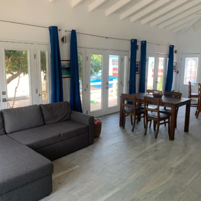 Flamingo Airport is 2.2 km from the property. A Taxi is usually $10 or if you rent a vehicle the home comes with two private designated parking spaces. There is an outdoor shower, BBQ, and rinse tanks on site. This home is non-smoking, with no pets allowed.